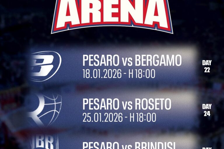 Gennaio alla Vitrifrigo Arena! Info e prevendita biglietti per i match contro Bergamo, Roseto e Brindisi 8 Gennaio 2026 Leggi tutto