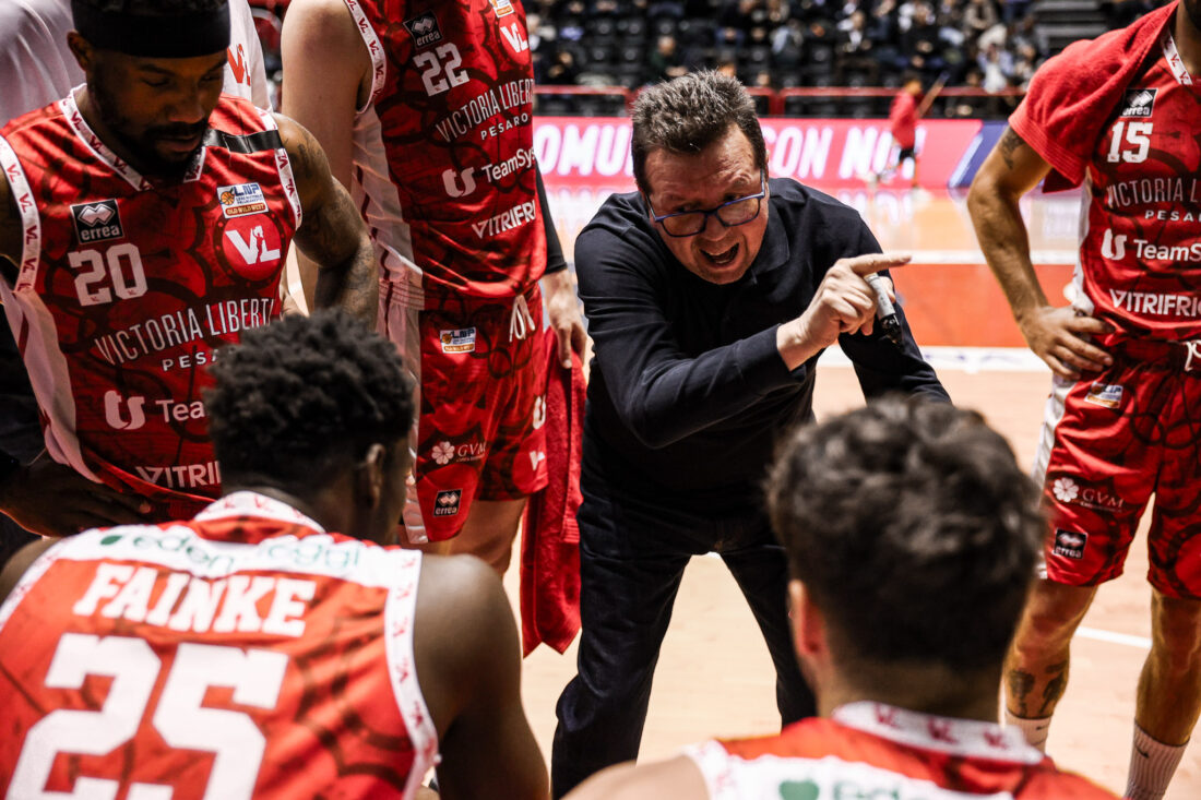 Il coach della Victoria Libertas Pesaro Spiro Leka presenta la gara della 15^ giornata di Serie A2 Old Wild West che vedrà i biancorossi impegnati sul parquet della Vitrifrigo Arena per la sfida contro la Reale Mutua Torino: palla a due alle 18:00 di domenica 30 novembre con diretta streaming su LNP Pass, radiocronaca diretta su Radio Incontro Pesaro (FM 91.9 per Pesaro, 103 per Urbino e zone interne) e in differita domenica alle 21:30 su Rossini TV (canale 80 del digitale terrestre). A dirigere l’incontro saranno i signori Barbiero, Puccini e Yang.