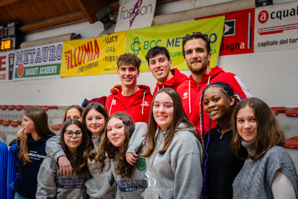 Una squadra che sta regalando emozioni e una grande famiglia, unite dalla passione per la pallacanestro e per la Victoria Libertas. Nei giorni scorsi ad Acqualagna in 370 tra grandi e piccini hanno preso parte a un pomeriggio molto intenso ed avvincente che ha visto ‘in campo’ alcuni giocatori biancorossi – Quirino De Laurentiis, Nicolò Virginio e Octavio Maretto – grazie all’ottima organizzazione di Metauro Basket Academy che da anni è presidio strategico sul territorio della provincia di Pesaro e Urbino per il Club biancorosso: dal 2023 è Centro di Formazione VL. Un pomeriggio e una serata davvero emozionante a ulteriore dimostrazione di come la Victoria Libertas sia la squadra di un intero territorio che va ben oltre la città di Pesaro.
