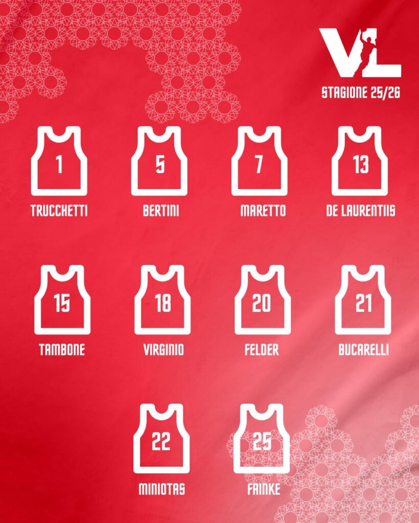 La Victoria Libertas Pallacanestro Pesaro comunica i numeri di maglia dei giocatori del roster per la stagione 2025/2026. Del team biancorosso fanno parte anche gli aggregati Pietro Reginato ed Eduardo Sakine.