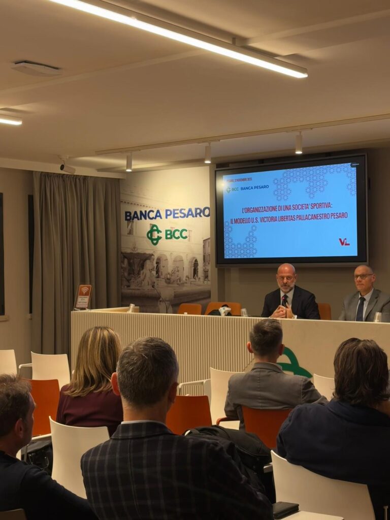 Un momento di confronto voluto da Banca di Pesaro – Official Bank della VL -, come sottolineato dal Direttore Generale, Paolo Benedetti: “Siamo felici del rapporto che da anni si è instaurato con la Victoria Libertas e che cresce sempre più. Ringrazio a nome della Banca l’AD Dalla Salda che ha fornito un parallelismo tra le nostre due realtà. Sia in Banca di Pesaro che in VL le risorse umane hanno un ruolo fondamentale. Per entrambi, lo stesso obiettivo che consiste nella valorizzazione del nostro territorio, in campo sportivo e finanziario. Il tessuto cittadino sta fornendo una risposta positiva: Banca di Pesaro lo sta riscontrando in termini di prodotti e servizi erogati alla clientela, la VL sta regalando emozioni ai suoi tantissimi tifosi. Avanti così!”.