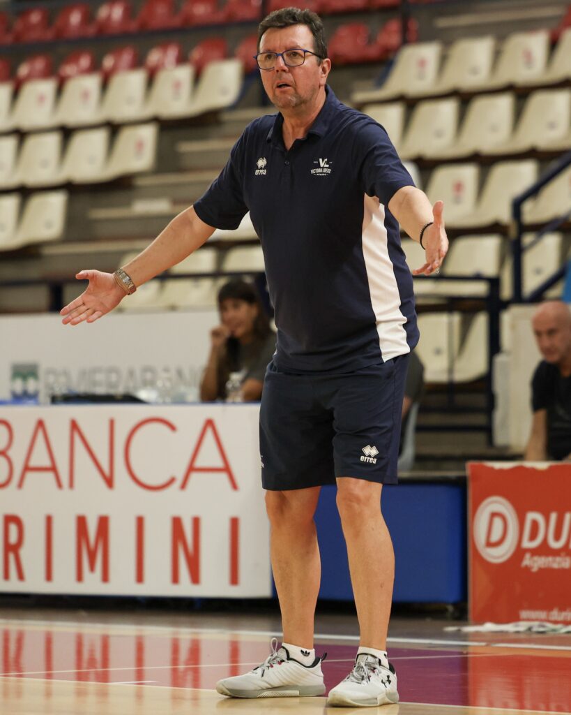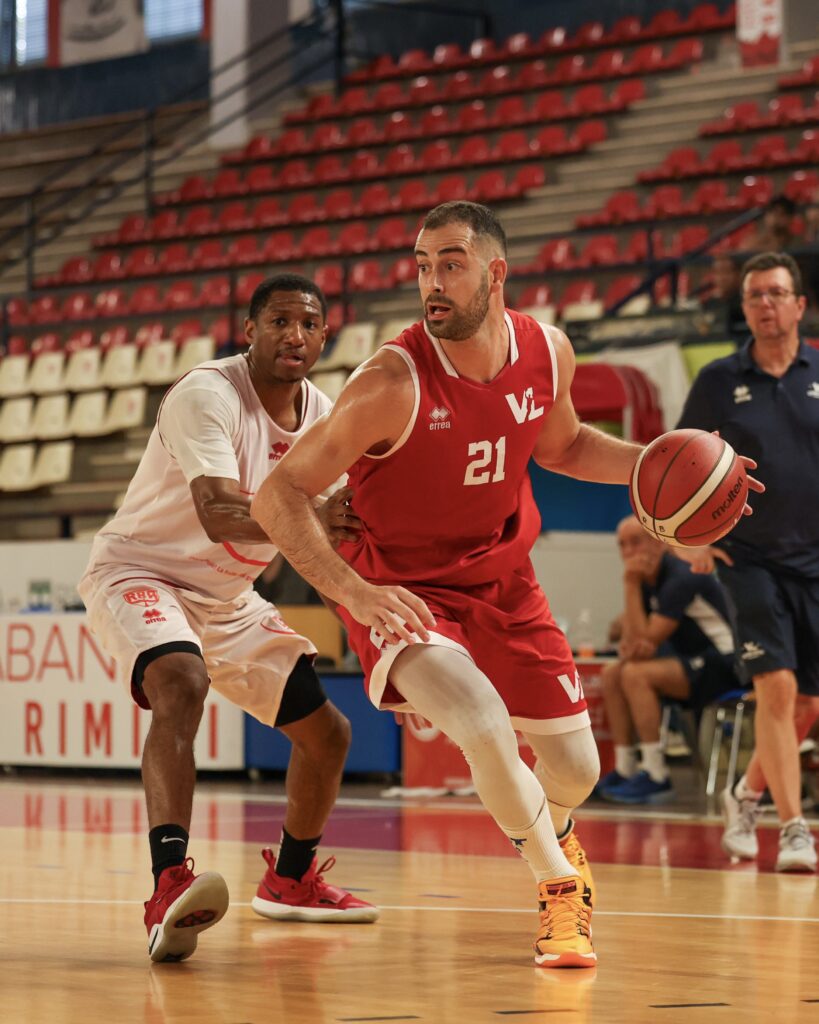 Gli ultimi dieci minuti partono con un break di 14-0 per i riminesi che sfruttano alcuni errori di troppo da parte dei ragazzi di coach Leka. Reazione pesarese ma i padroni di casa restano in vantaggio (78-69). Due triple consecutive di Virginio e un canestro di Miniotas riportano la VL a -4 (83-79) a 1’04” dal termine. 1/2 per il lituano, Rimini non trova il canestro ma conquista il rimbalzo con Marini che poi fa 1/2 dalla lunetta: finisce 84-80.